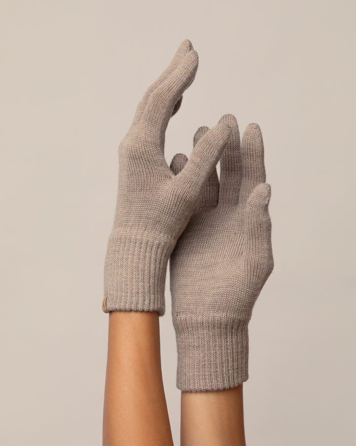 Hansker i naturlig merinoull lar huden puste og regulerer temperaturen effektivt. Den enkle, elastiske strikken tilpasser seg hånden og gir god fingerfølelse uten å begrense bevegeligheten. Det minimalistiske designet gjør hanskene like godt egnet for både kvinner og menn.